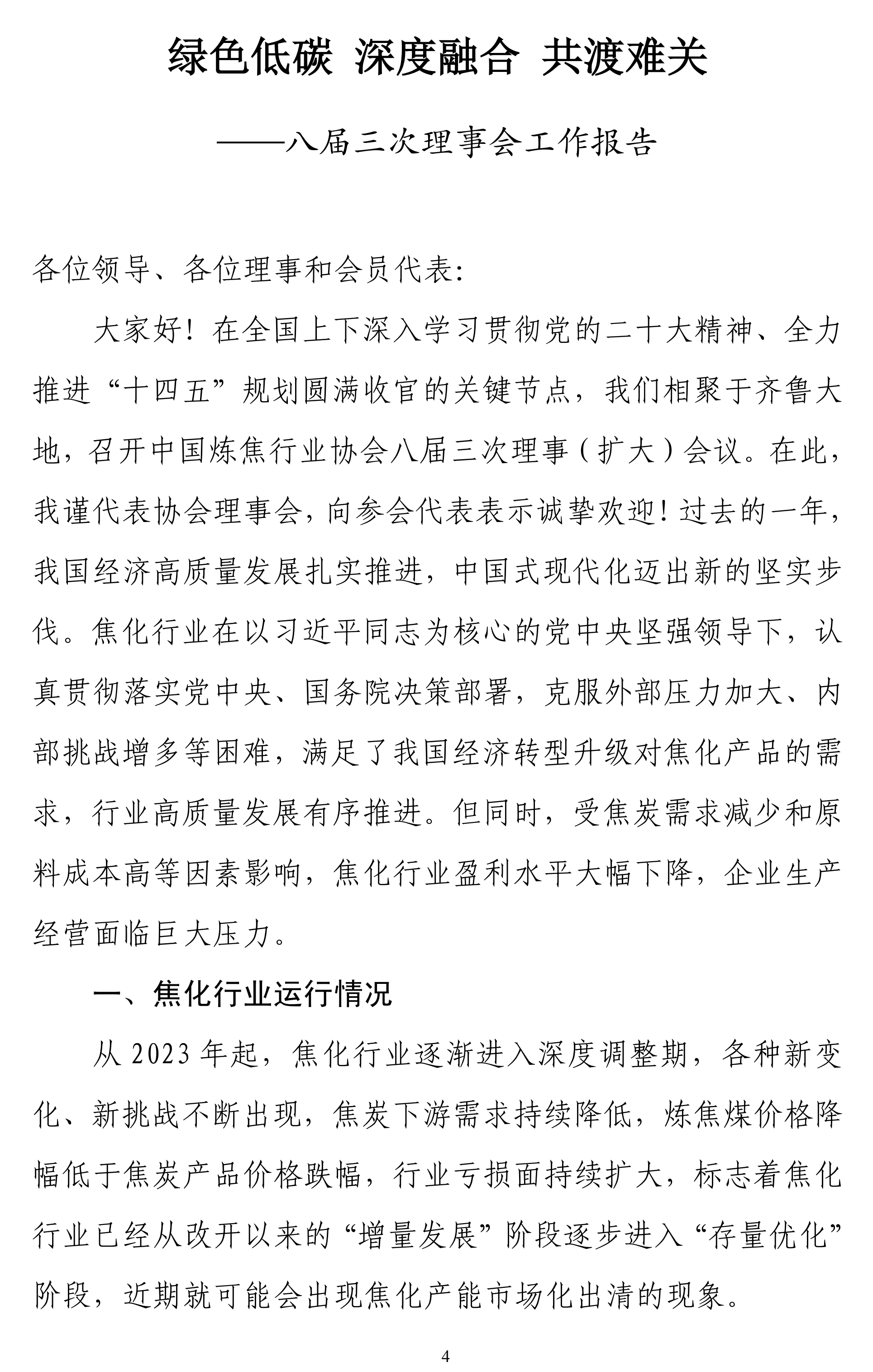 绿色低碳 深度融合 共渡难关--八届三次理事会工作报告(炼焦行业协会会长石岩峰)